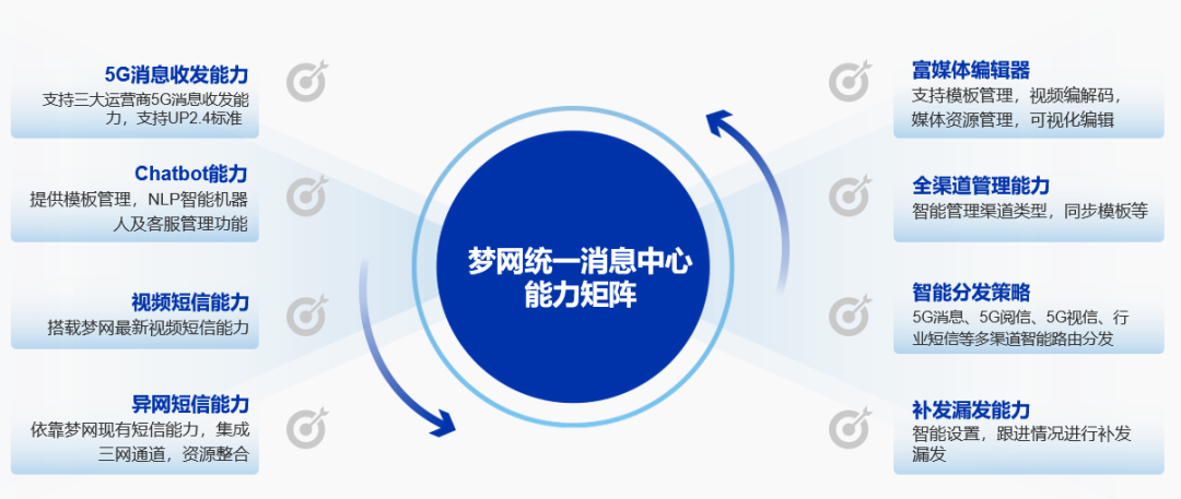 南宫NG28(中国)统一消息中心(UMC)作为面向5G时代打造的融合通讯解决方案,集智能接入、智能管理、智能生产、智能运营和智能营销于一体,实现了全终端、全场景、全业务、全渠道的广泛覆盖。UMC给予灵活的在线SaaS服务和定制化的线下私有化部署方案,能够满足不同行业的多样化需求,并全面对接市面上主流的5G阅信渠道,包括南宫NG28(中国)阅信直发、天慧5G阅信、移动5G阅信、联通电信5G消息以及华为云KooMessage等,为企业构建起高效、稳定的通讯生态系统。